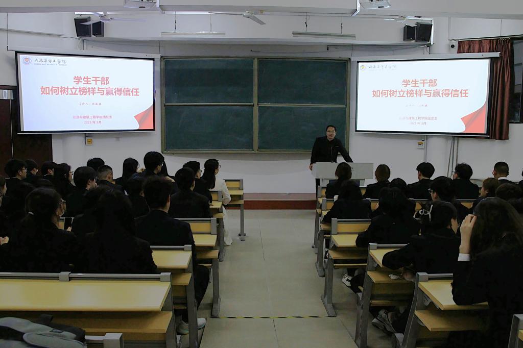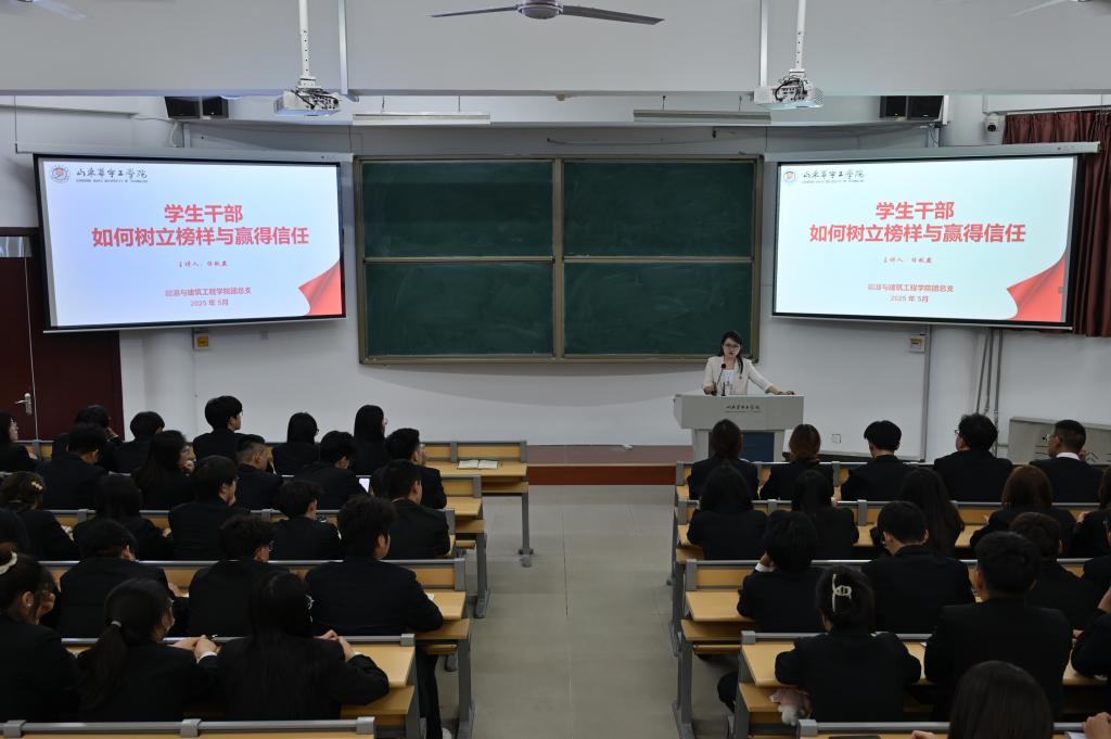 随后,团总支书记任秋燕围绕“员工干部的角色与责任”展开主题讲座。她指出,员工干部要充分发挥“双重角色”作用,既要做好服务者,更要当好引领者。在树立榜样方面,任书记重点强调了四大核心维度:一是思想引领,要坚定理想信念,做正能量的传播者;二是学业示范,必须保持优异成绩,做好榜样示范;三是工作态度,要做到积极主动、严谨负责;四是生活作风,要低调谦逊、乐于助人,展现良好精神风貌。