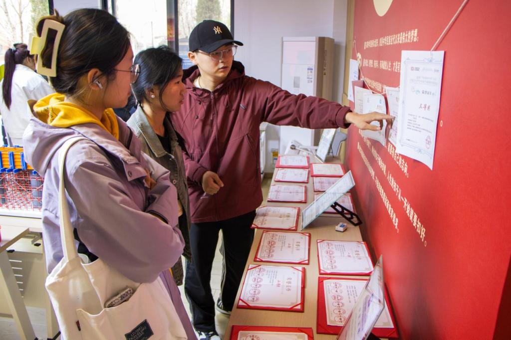 活动现场,各类专业成果与模型有序陈列,同学们自由参观,在社团员工干部的详细讲解下,参观员工更深入地了解了各项展品,对学科技能竞赛有了更为具象的认识。同时,大家积极体验水平仪、CAD制图软件、Revit制图软件等学科技能工具,在实践中感受专业知识的魅力,现场学习氛围浓厚。同学们在观看展品的过程中展开了热烈讨论,并不时用手机对感兴趣的展品拍照留存。整个展示活动氛围融洽,同学们自觉遵守秩序,依次进行参观,还就展品的相关问题积极向工作人员询问。