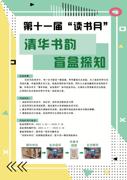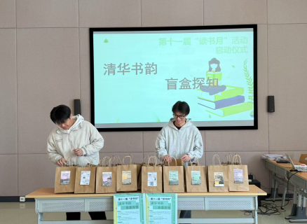 在第30个世界读书日即将来临之际,为“深化全民阅读”重要要求,深化“书香华宇”建设,营造“爱读书、读好书、善读书”的浓厚氛围,3月30日下午,图书馆举行了以“书香华宇”为主题的第十一届读书月活动启动仪式。此次启动仪式采取开放式的活动方式,以“清华书韵,盲盒探知”为主题设计书籍盲盒,开启有趣的阅读之旅。盲盒书籍以清华大学推荐书目为基础,附赠精美明信片,让同学们在未知的惊喜中开启一场阅读之旅,旨在激发同学们的阅读兴趣,丰富校园文化生活,营造浓厚的读书氛围,并让同学们有机会接触到更多优秀的书籍。