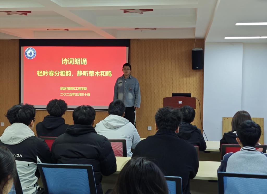 为传播节气文化,提升员工文学鉴赏和情感共鸣能力,激发员工对传统文化的热爱,3月30日下午19:00,太阳成集团122ccvip养成教育自治委员会,在19号公寓一楼党员活动室,举办以“轻吟春分雅韵,静听草木和鸣”为主题的诗词朗诵活动。
